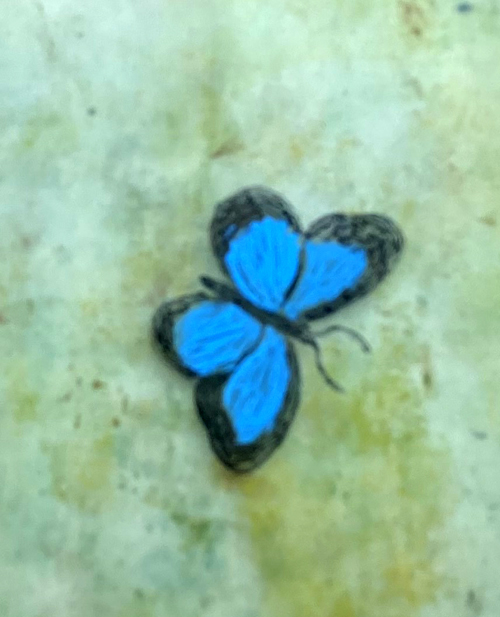 You can see that the gel plate resisted the paint pen a bit but I could now paint another layer the butterfly. I am not sure if I'd use this technique though. I could have just drawn the butterfly onto the paper in the first place, but maybe it would give a different look. I suppose that means you would have to do further tests and compare the results.